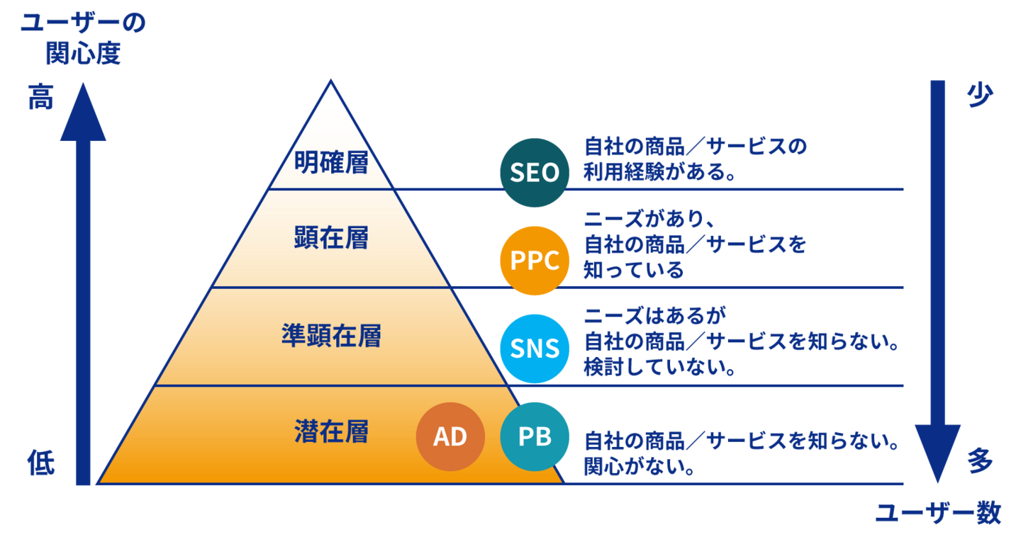 AD:運用広告 PPC:クリック成果型広告 SEO:検索エンジン対策 PB:ポイントサイト