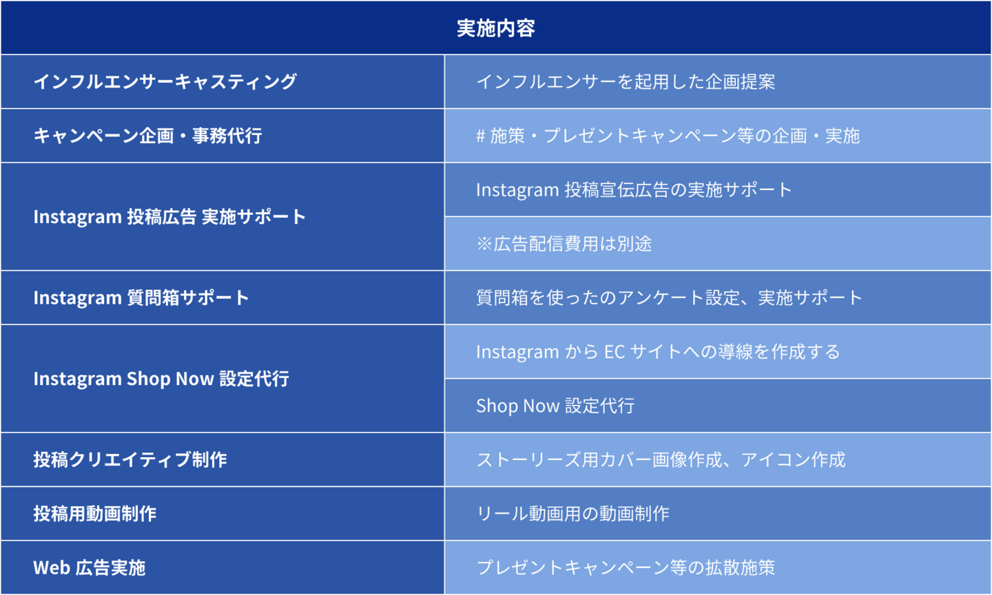 毎月のレポート、定例会議での実績と改善策の共有、目標達成への伴走など運用~報告までのSNS運用の全てを対応いたします。